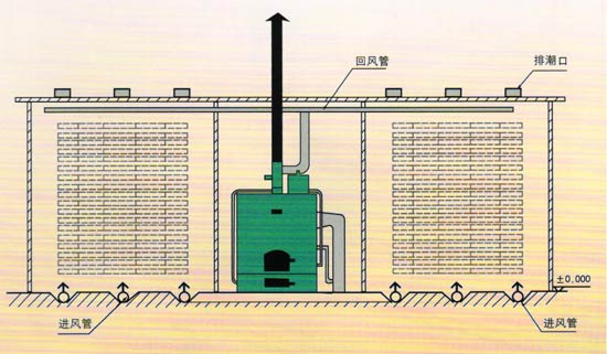 熱風(fēng)式干燥設(shè)備工作原理是利用燃燒產(chǎn)生的熱能,加熱窯內(nèi)的空氣,由熱風(fēng)爐頂部主風(fēng)機將窯內(nèi)的空氣通過管道吸入爐體,將空氣加熱。再通過管道,送入窯內(nèi),由窯內(nèi)的循環(huán)風(fēng)機不斷的循環(huán)對窯內(nèi)的木材均勻加熱。木材干燥過程中如需要蒸汽,可由熱風(fēng)爐內(nèi)的蒸汽發(fā)生器提供,如果是一爐兩房或多房時,管道上裝有插閥,通過插閥的調(diào)節(jié)來控制窯內(nèi)的溫度。在干燥的過程中,由于木材要進行排濕,在窯頂上留有排濕孔(根據(jù)地區(qū)而定)和裝有抽濕機,用來調(diào)節(jié)排濕的快慢.
